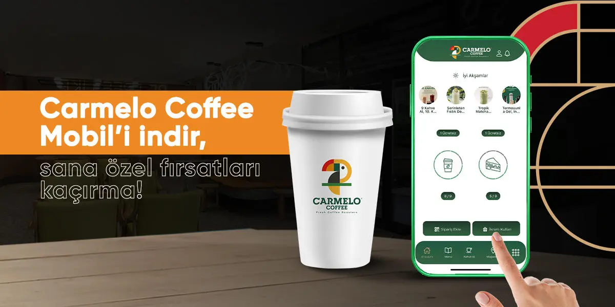 Mobil uygulamamızı şimdi indirin ve Carmelo Coffee ayrıcalıklarından faydalanmaya başlayın!
